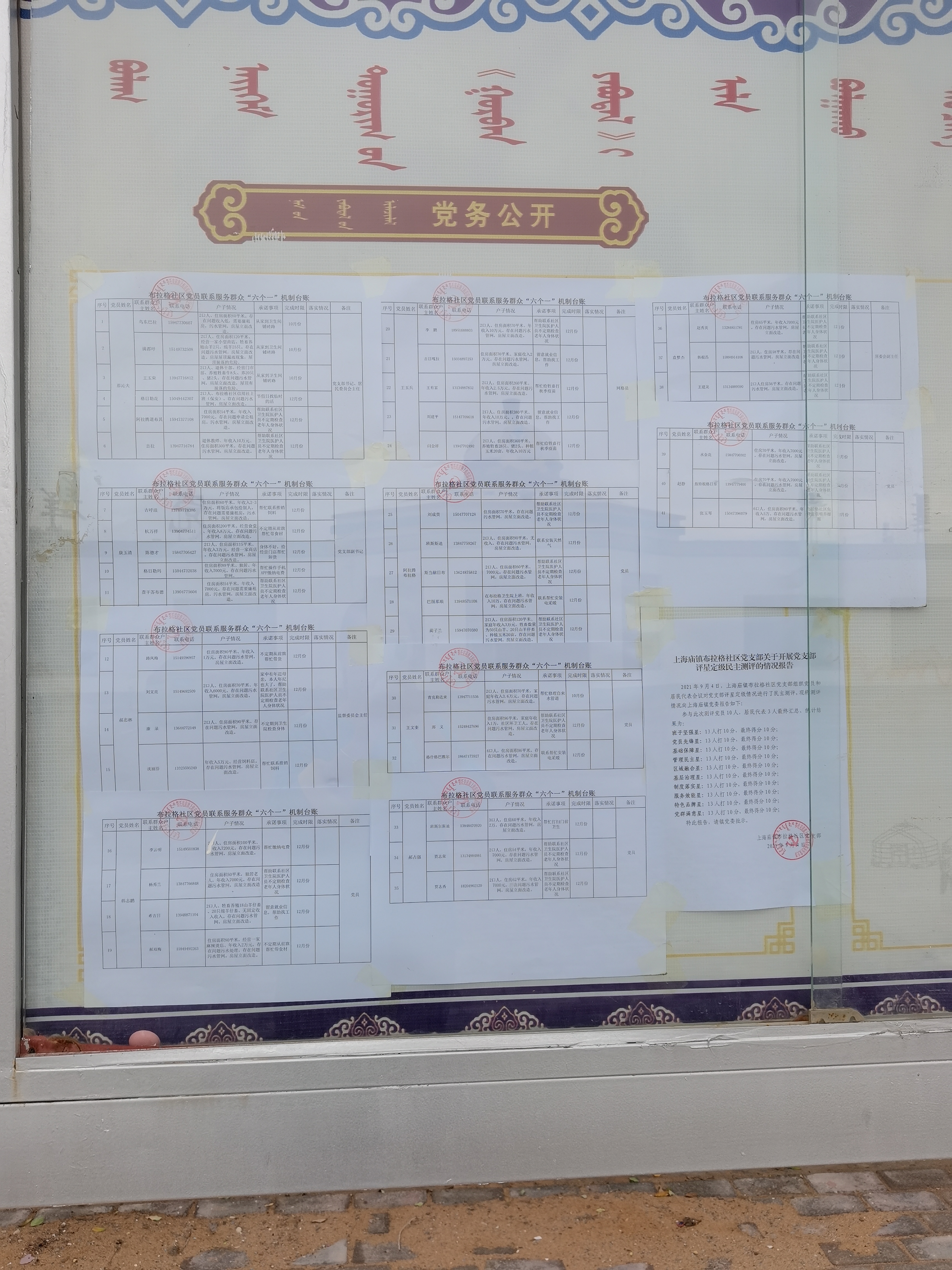 上海庙镇布拉格社区党员联系服务群众“六个一”机制承诺事项