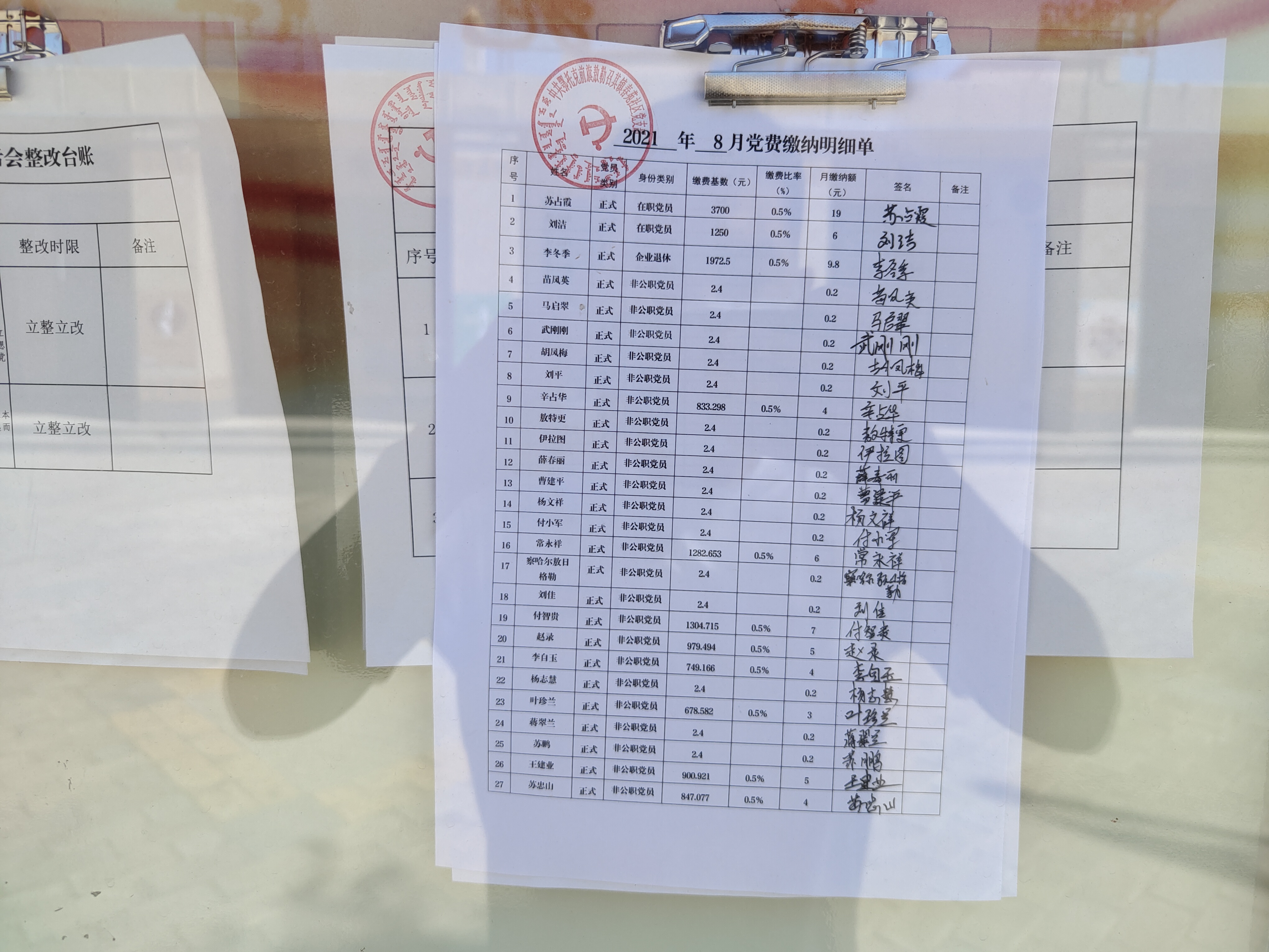 春苑社区2021年8月份党费公示