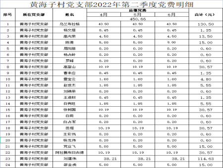黄海子村党支部2022年第二季度党费明细