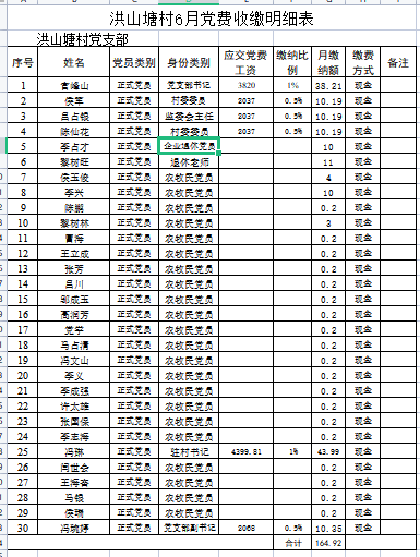六月党费交纳