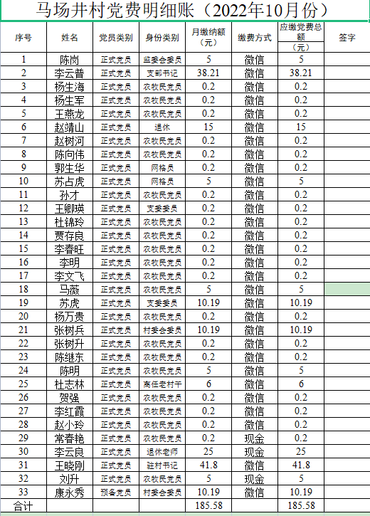 马场井村10月份党费公示