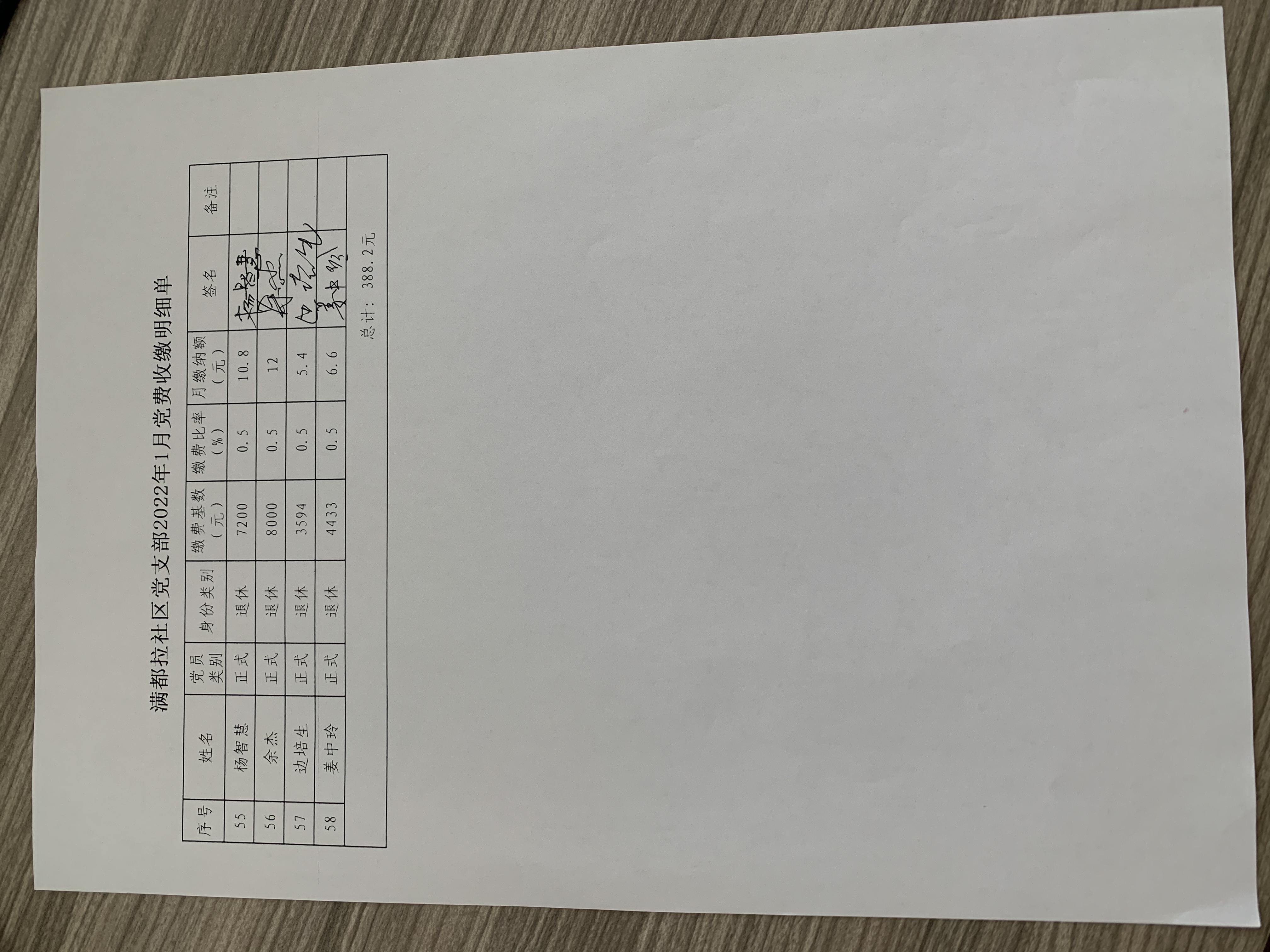 满都拉社区党支部2022年1月党费收缴明细