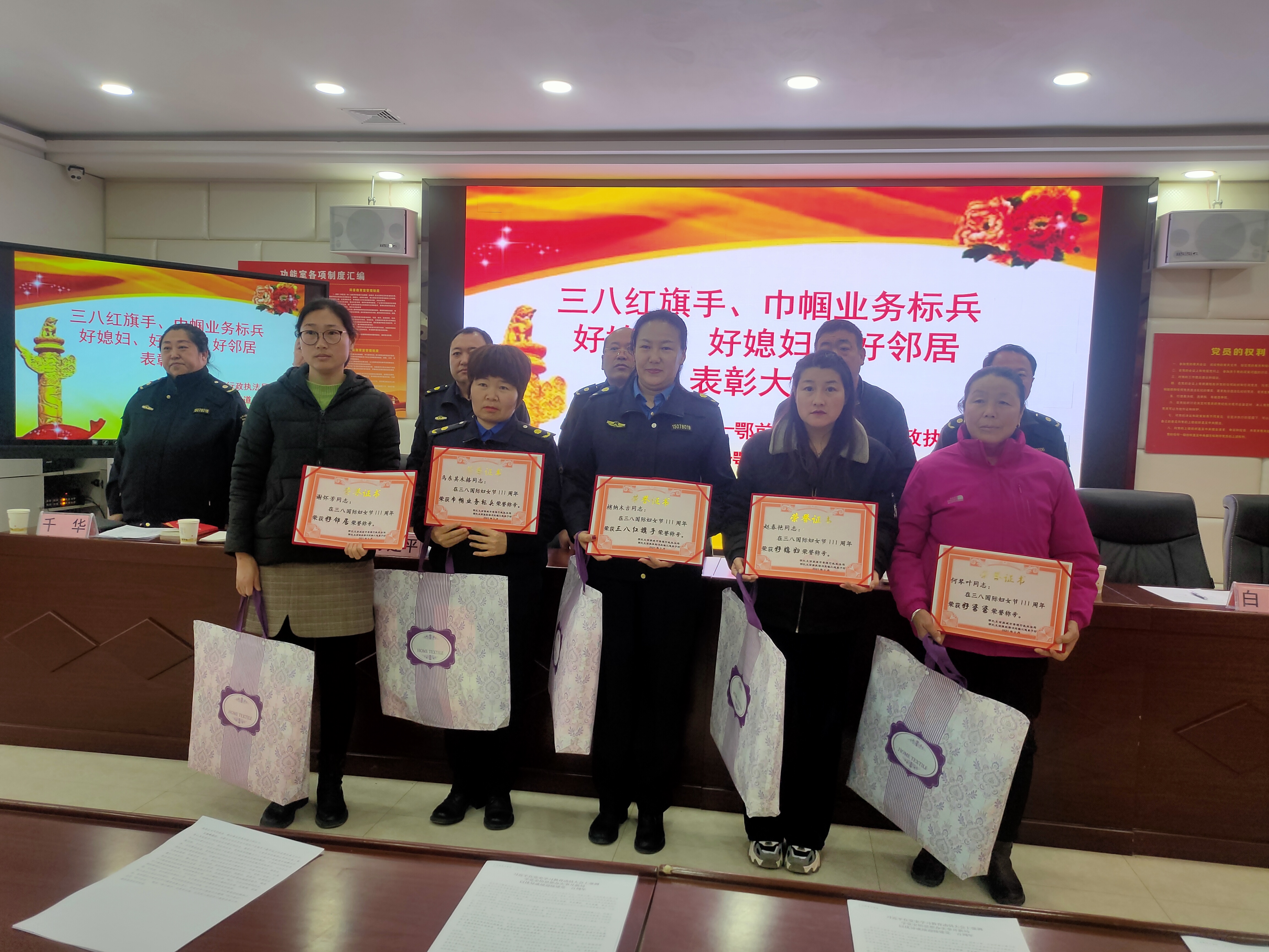 2021年3月8日,旗包扶单位城市执法局联合三道泉子村组织开展庆三八·心向党 共赴伟大新时代主题党日活动,会上传达学习了全旗两会精神,并表彰了三八红旗手、好婆婆、好媳妇、好邻居、巾帼业务标兵。会后进行了拔河、抢凳子等趣味活动。