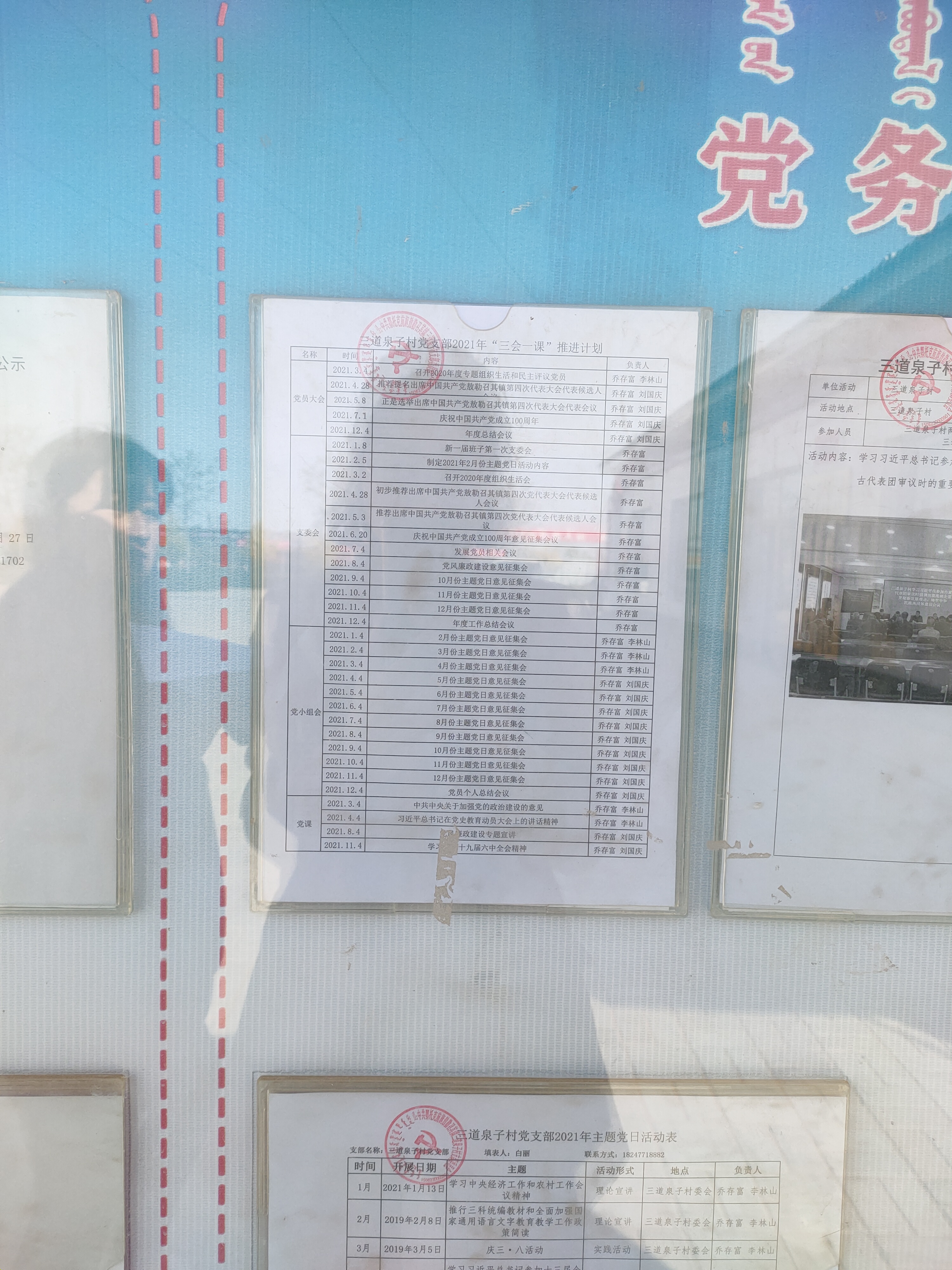 三道泉子村2021年三会一课计划公开