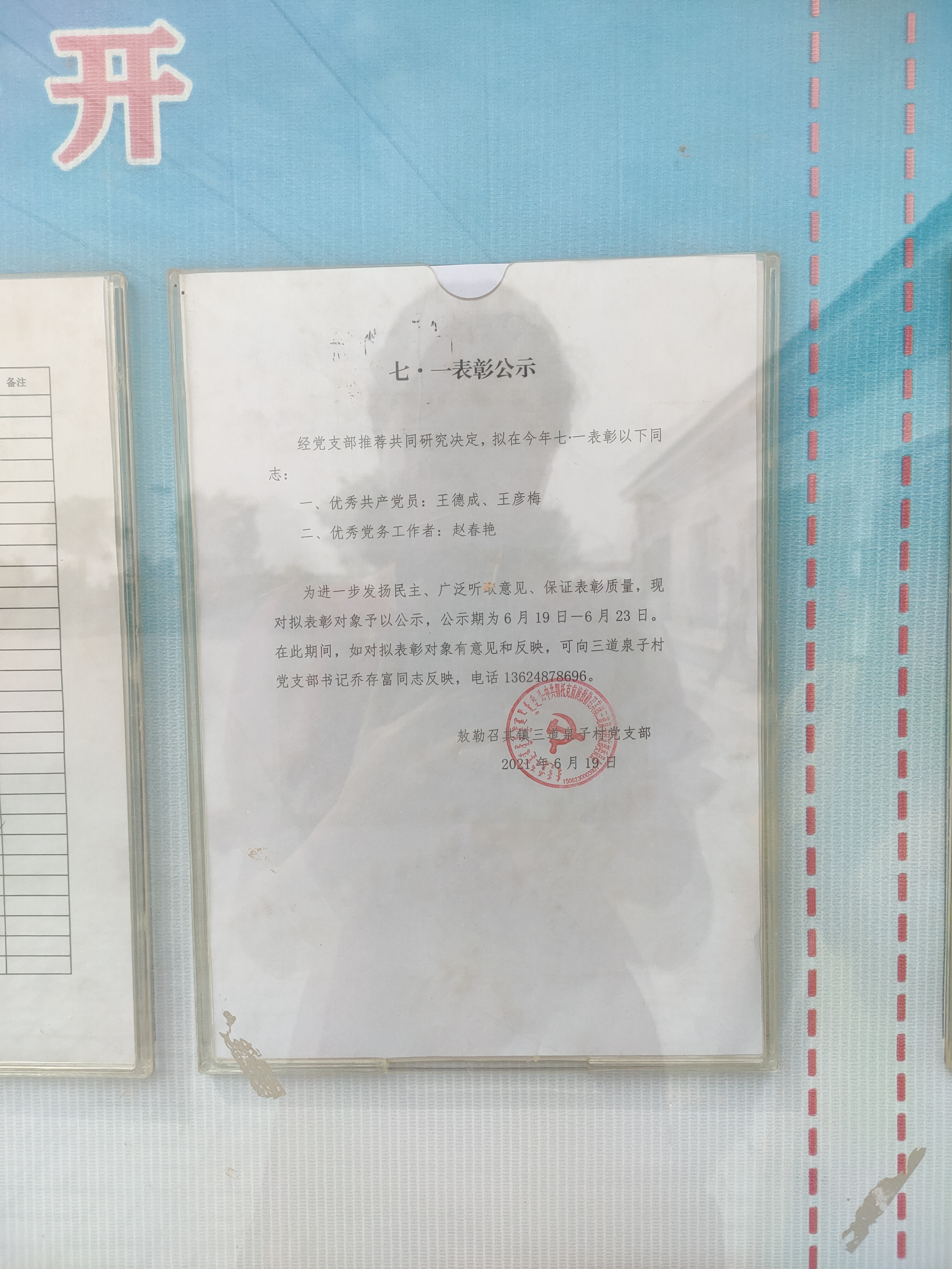 三道泉子村2021年七一表彰公开