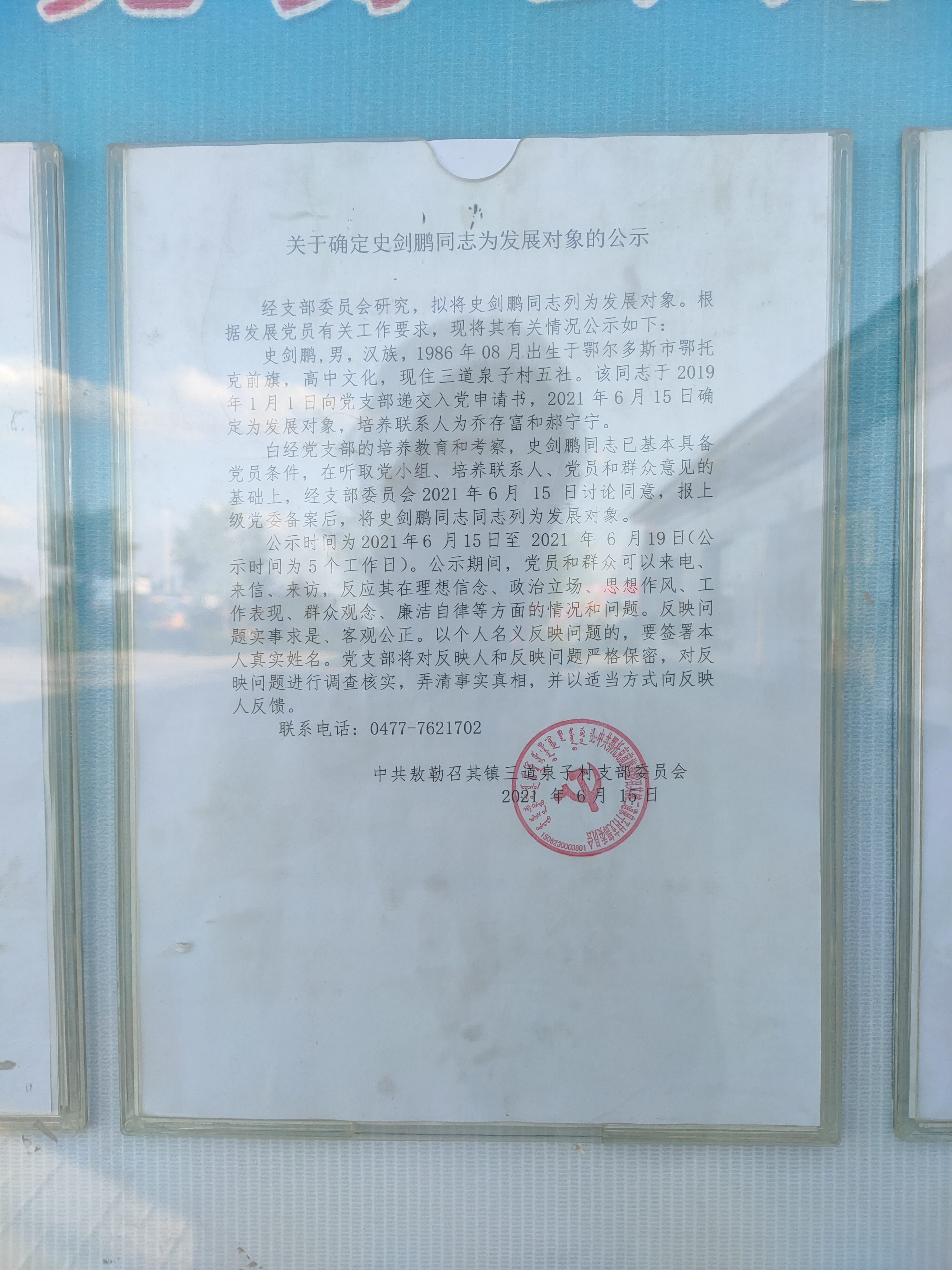 三道泉子村2021年发展对象公开