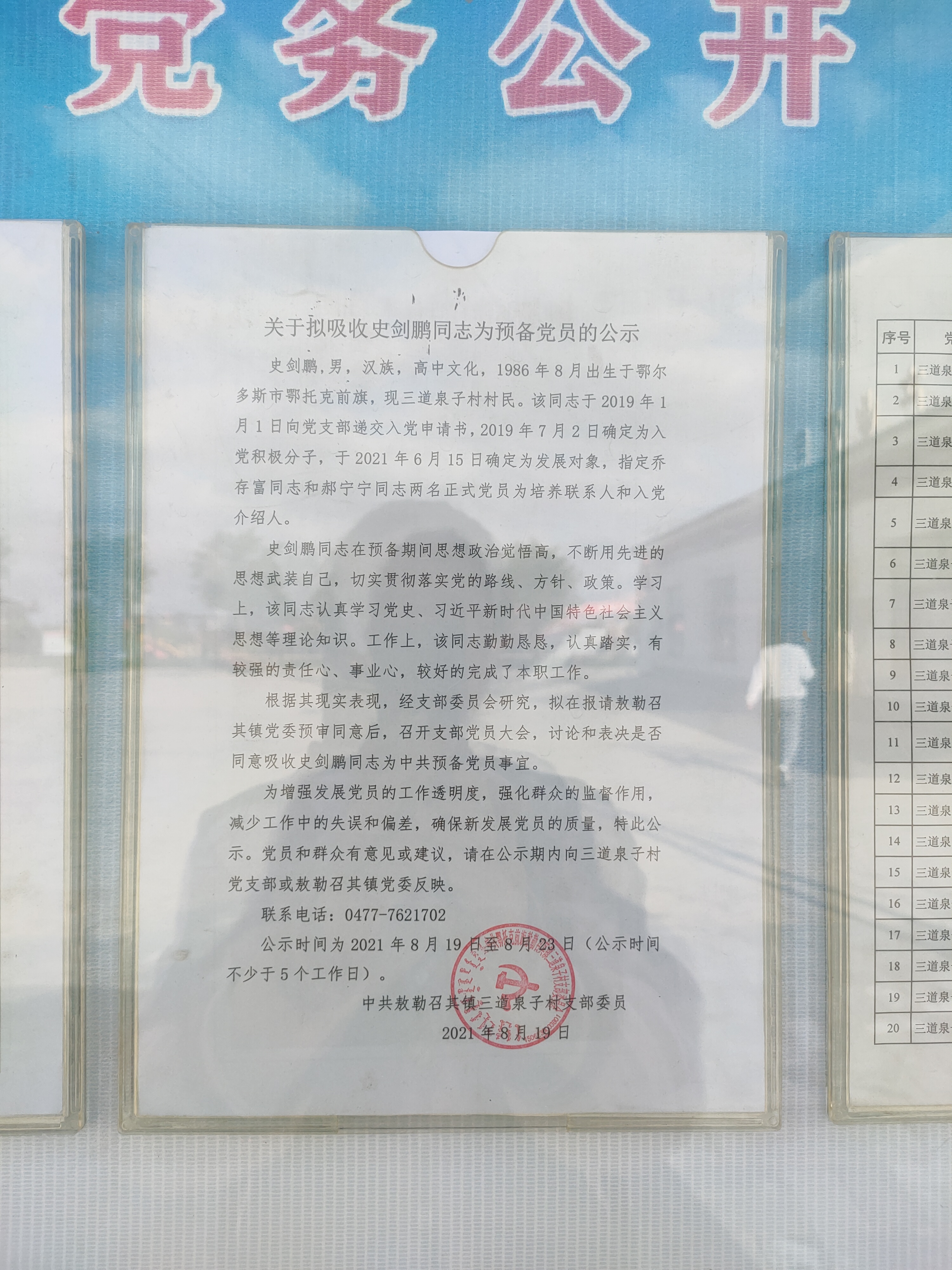 三道泉子村2021年吸收为预备党员公开