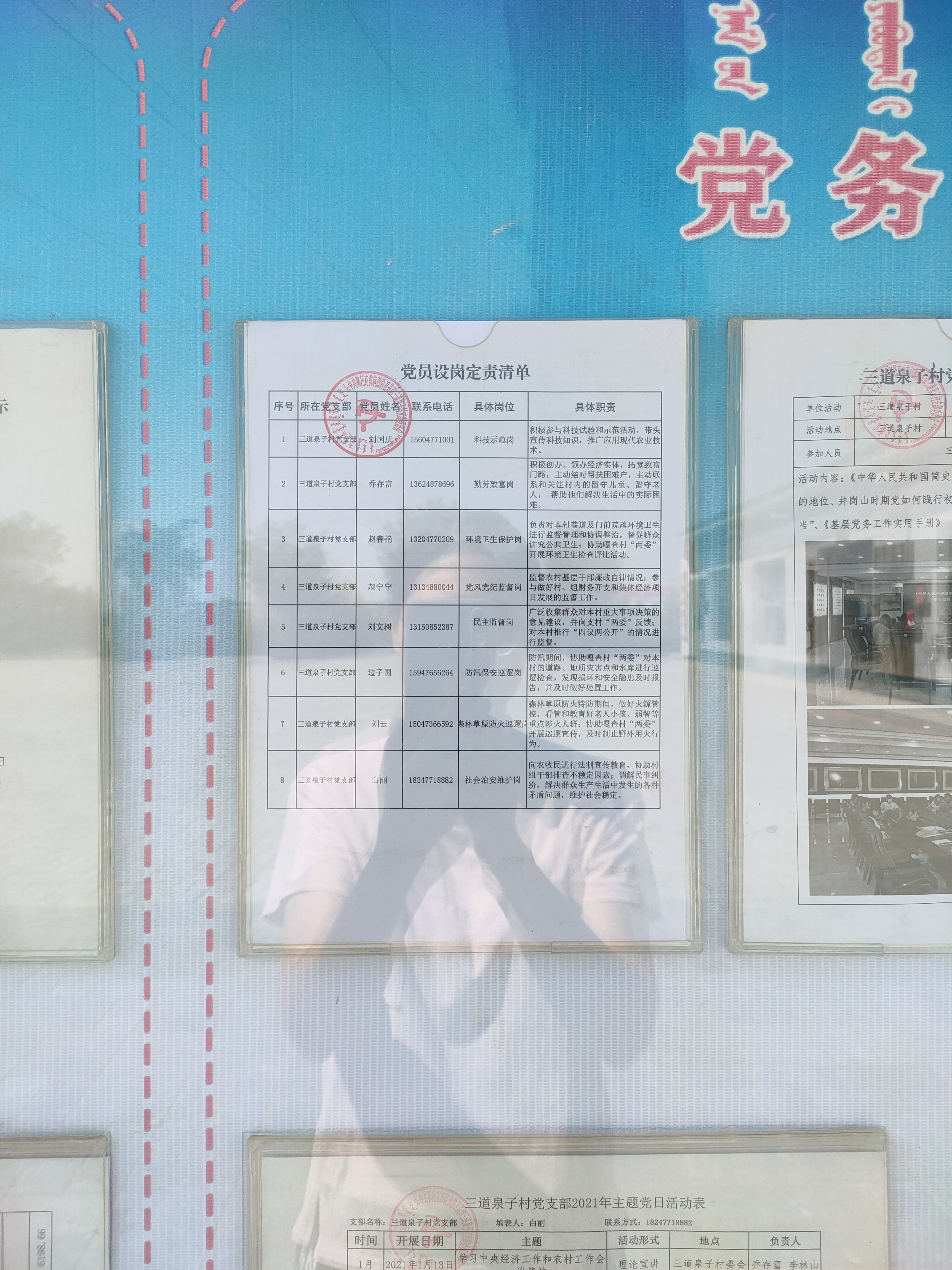 三道泉子村党员设岗定责清单公开