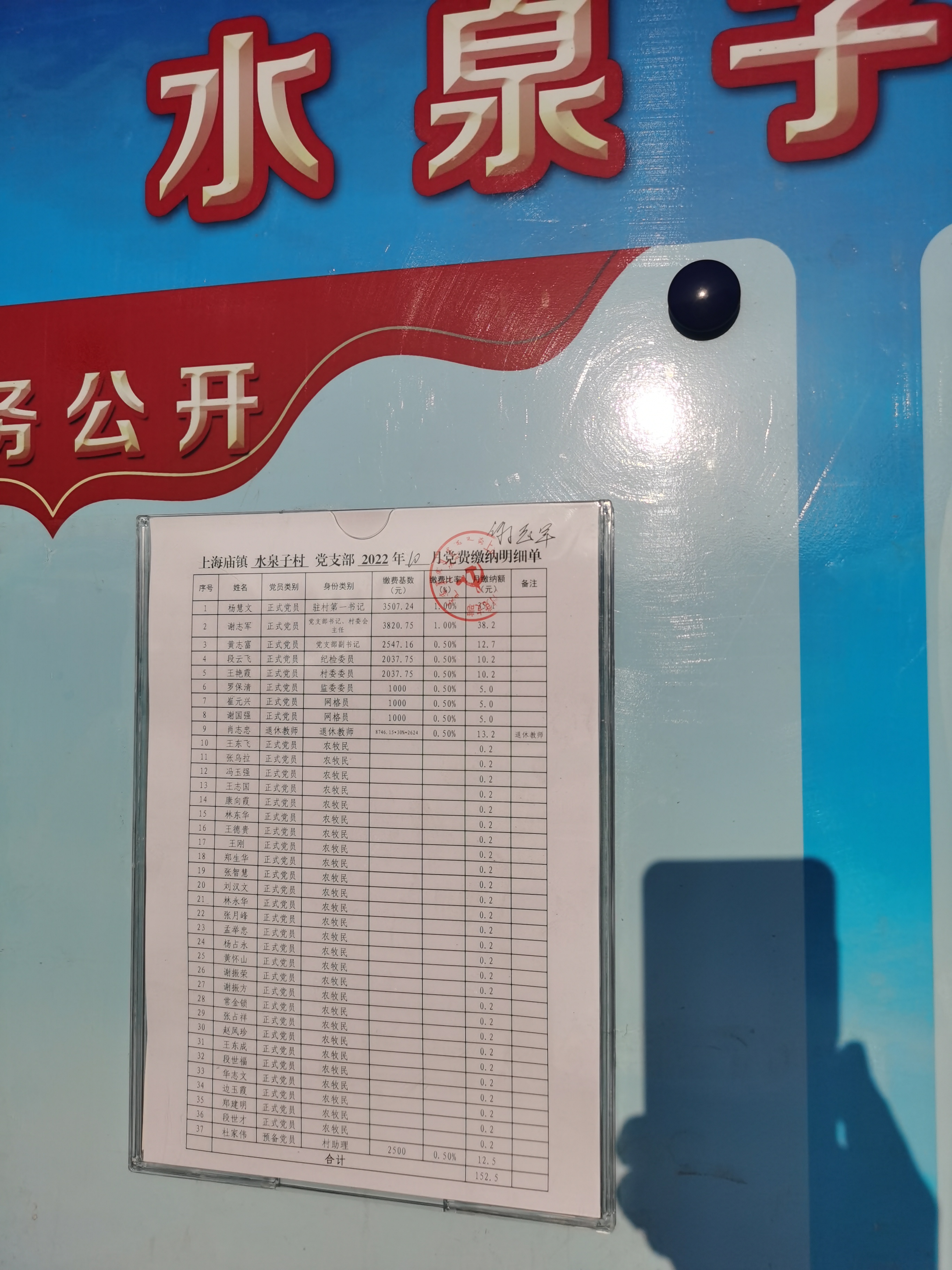 10月份党费收缴情况公示