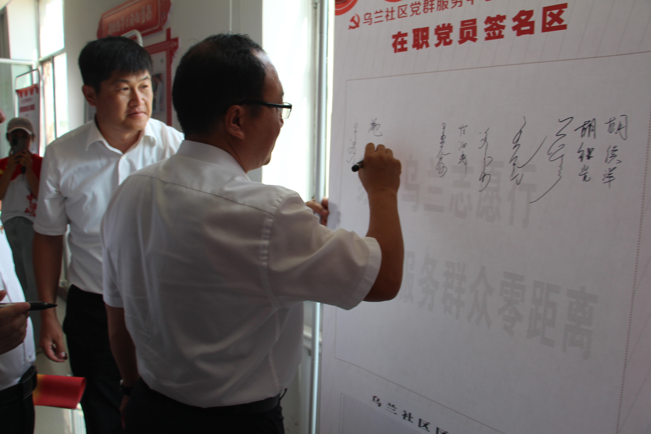 在职党员认领居民群众“微心愿”,并在活动签名板上郑重签下自己的名字